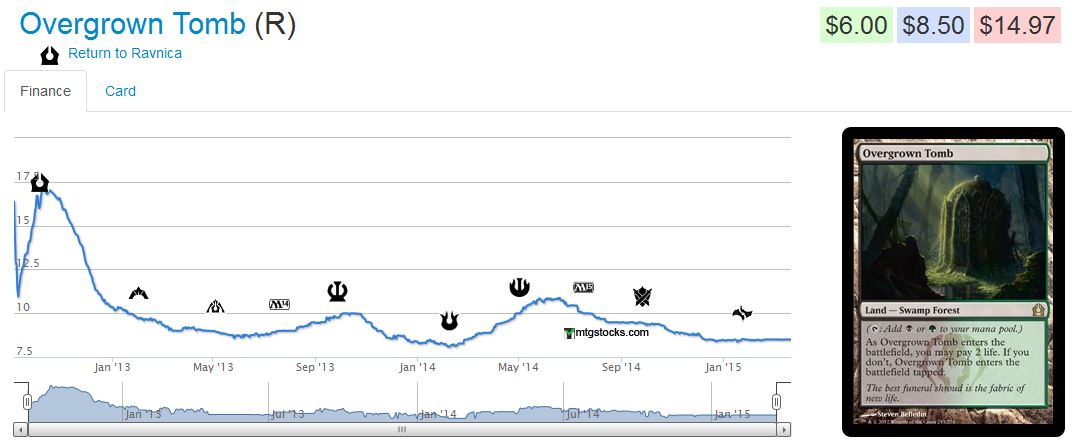 But if history is any indicator, I think the change of season will also mean a shift in financial opportunity. Casual staples will also be solid pick-ups, but I anticipate greater profits will be had in Modern and Legacy soon enough. Players are about to have a cash infusion into their trade binders – a stimulus of sorts, driven by Modern Masters 2015. And more fetch lands in Battle for Zendikar could mean a lower barrier to enter Modern and further increase in player base. Both would mean price increases for Eternal staples.
