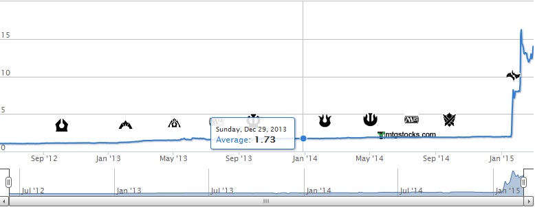 Dragonspeaker Shaman has been pretty stable since around the release of Journey into Nyx. This Scourge card has long been one of the best ways to keep your dragons cheap in Commander and is an obvious inclusion in any dragon deck that includes red. As this card hasn't yet been touched by speculators, there's still time to get in on these.