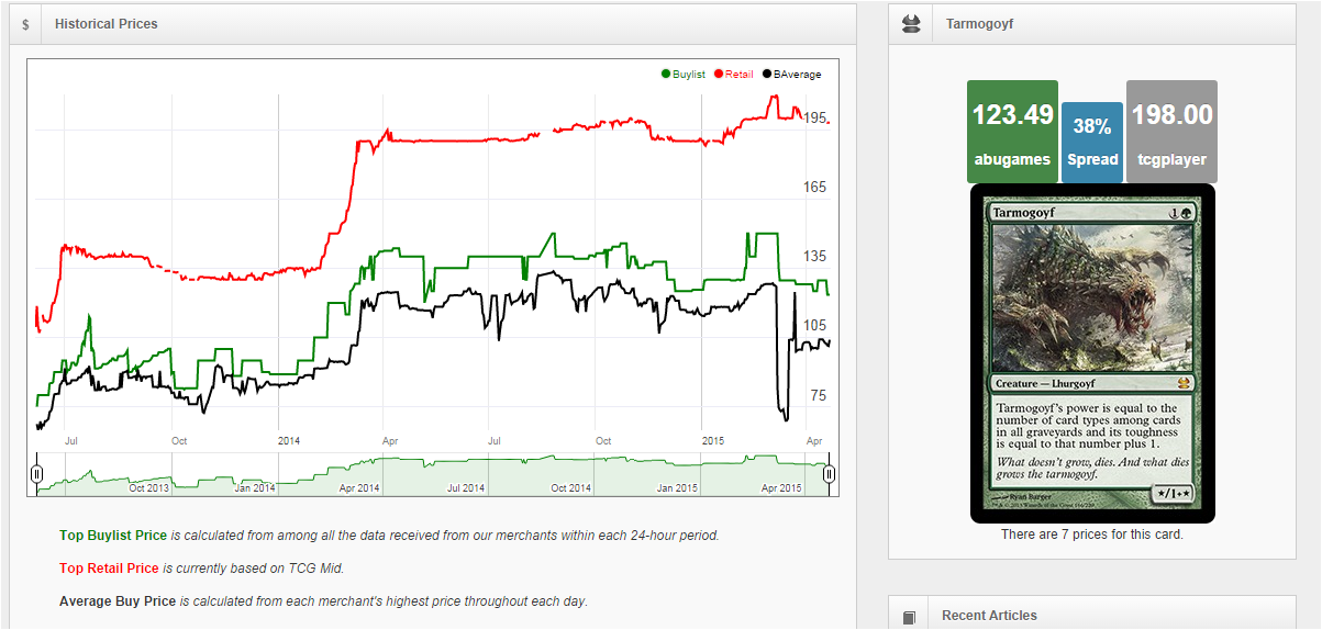Cryptic Command wasn't the only card, but that was a rare. Let’s try looking at good ol’ Tarmogoyf: