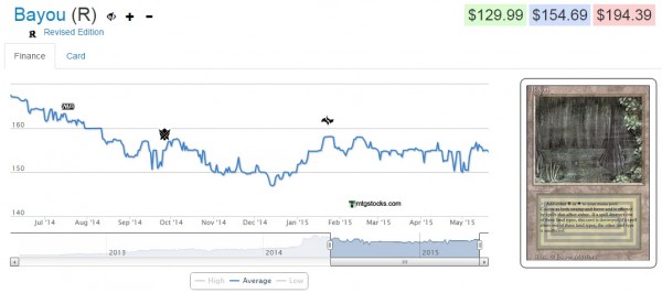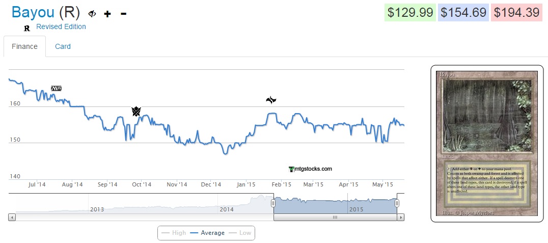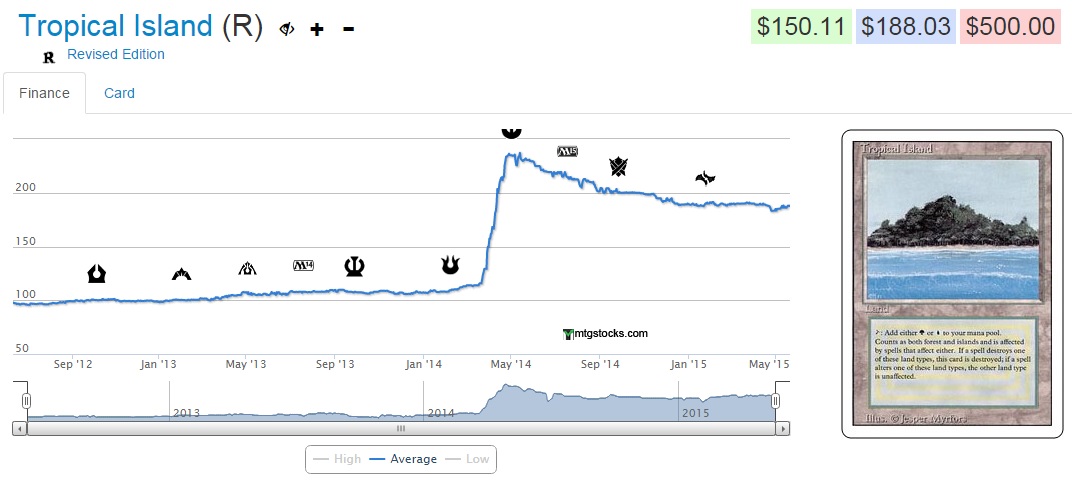 5. Tropical Island (+1.51%) - As I mentioned with Bayou, this is another of the key lands for both BUG and RUG and is the cheapest of the blue duals.