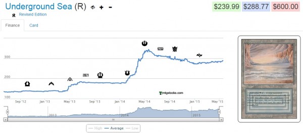 7. Underground Sea (+1.3%) - The third in our BUG lands with an increase, we see that despite being the most expensive dual land...there's still room to grow.
