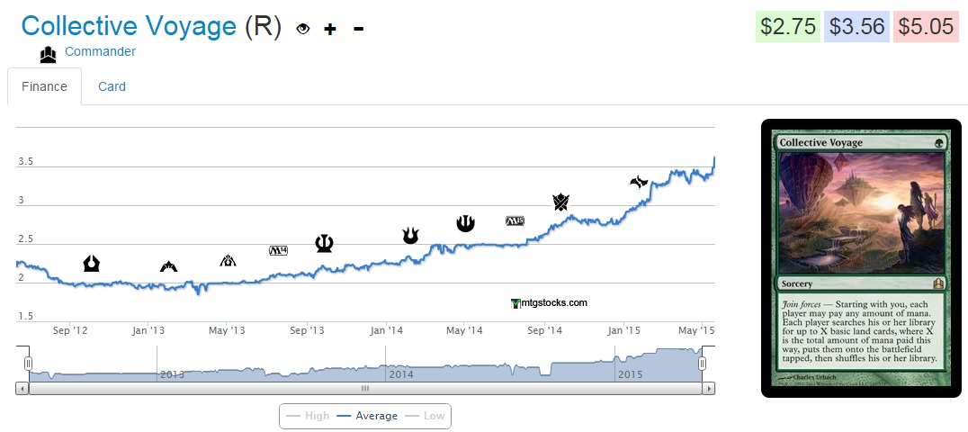 10. Collective Voyage (Commander) (+6.5%) - This one isn't all that surprising either. Green is known to be the best color in EDH and this is a card that goes well in both "group hug" style decks and any big ramp decks.