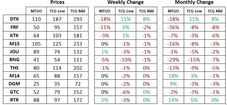 It all began with Matt and Sylvain's "MTGO Market Report for April 15th, 2015". Every time they run this article series they post a graphic like the one below:
