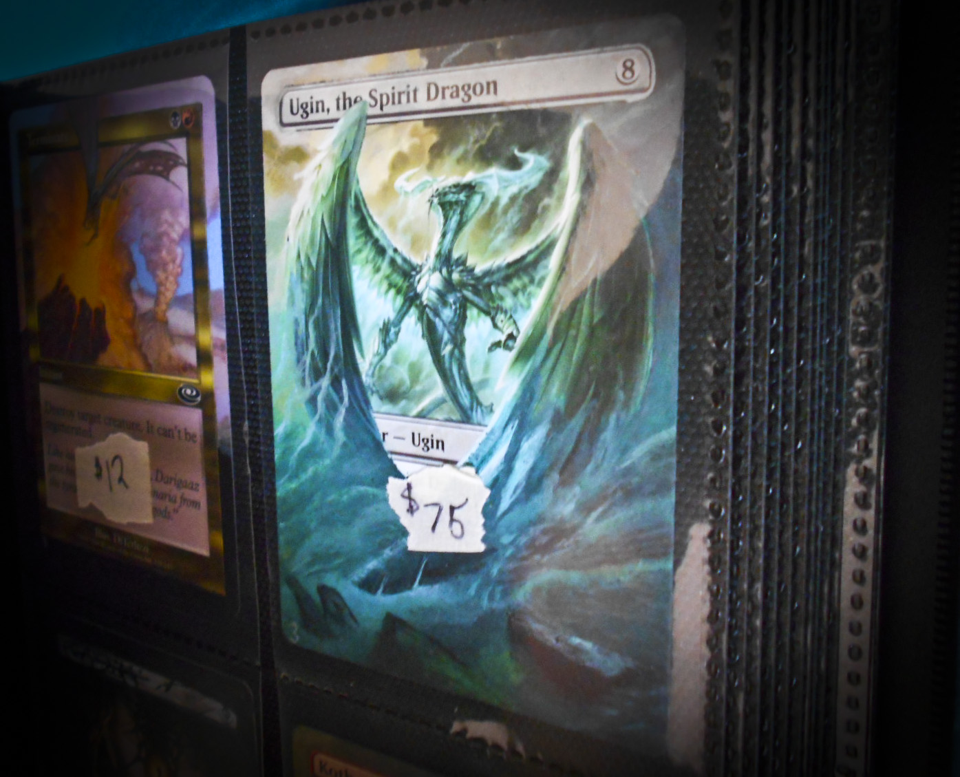 People almost always know how much Ugin, the Spirit Dragon is worth, but they may not know how much you are asking for your altered version. Marking your prices will eliminate the obvious question. It lets your buyer know that you are not just making prices up on the spot. In this way pricing your work helps to give your buyer a sense of security as well as a starting point for negotiations.