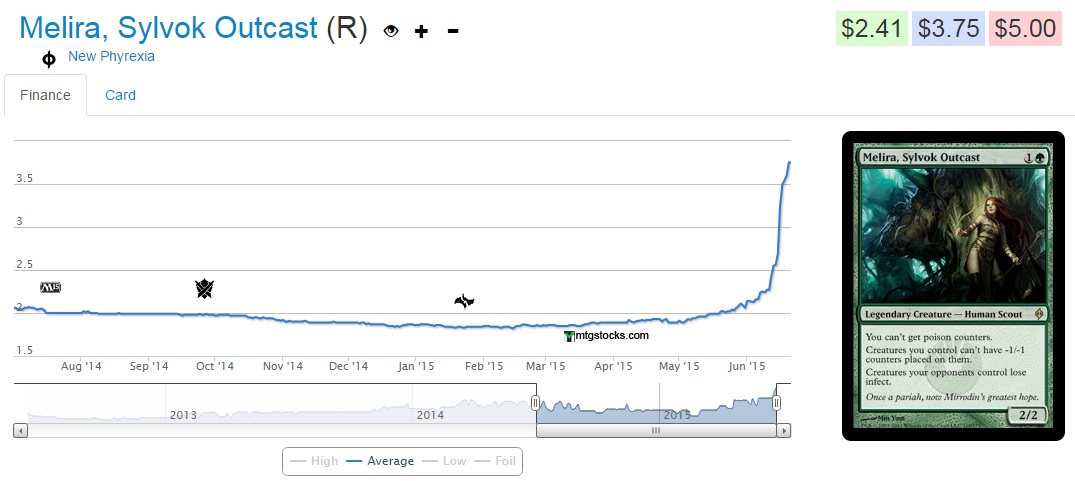 #9 Melira, Sylvok Outcast (+46.5%) - This one isn't all that surprising either. While the Junk CoCo lists prefer Anafenza, Kin-Tree Spirit to assist with their combos as it's more powerful on its own, Modern Infect decks are still very good and Melira is the best solution to them. Having a creature type of elf doesn't hurt either.