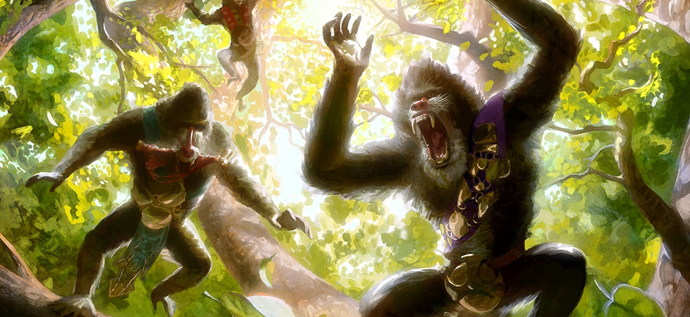 Hooting Mandrills boasts the best of both worlds, outclassing most blockers and pushing through damage even when confronted. Trample makes him a fair bit better than either Tasigur, the Golden Fang or Gurmag Angler in tempo, since the strategy counts on squeezing in small bits of damage wherever possible to run away with a win.