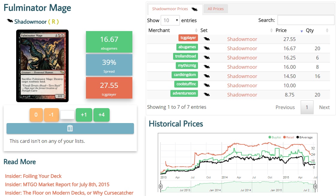 Again, sadly there's not a whole lot of crossover there. We get some in the fact that Jund plays a pretty greedy manabase and no mana dorks and Urzatron really needs to set up Tron quickly (if facing off against an aggressive deck) in order to control the game properly. A good card against both decks is Fulminator Mage, which once sat around $50 before plummeting with the MM2015 reprint to around $25 (and $20 for said reprint).