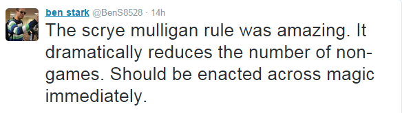 At Pro Tour Origins and in the weeks leading up I played a lot of matches with the new mulligan rule. As soon as I saw the rule I liked it, and playing with it more has only upset me in that it hasn't been implemented for every tournament yet. I'm firmly in Ben Stark's camp on this one.