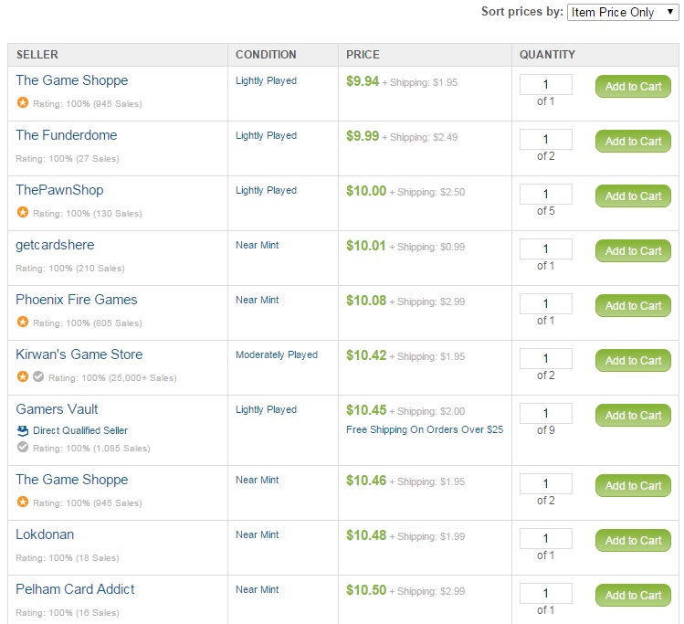 | Card Kingdom | 30.00% | $9.75 | $12.68 | 50.70 |