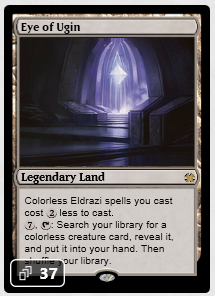 Buying 37 copies of Modern Masters 2015 Eye of Ugin was only based on the observed discrepancy between the Worldwake version, priced way above 20 tix, and the MM2 version, priced around 11 tix when I purchased my copies. As of writing, available supplies of Eye of Ugin are still fairly low.