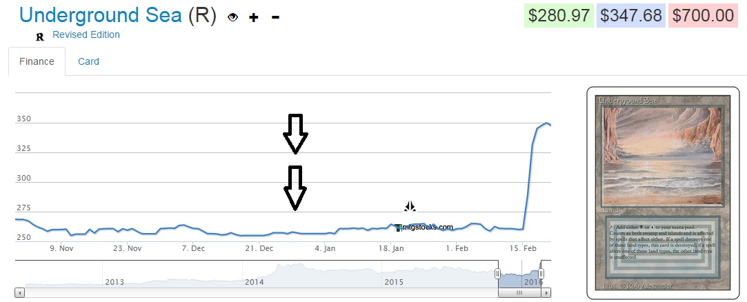 Unfortunately, our decisions always look obvious in retrospect. At the time I saw a continuous negative price trend since before Star City Games (SCG) announced that Sundays would no longer always be Legacy Opens. At the time of these transactions, having bought in considerably lower than their current price, my mindset was to lock in my profits while I could.