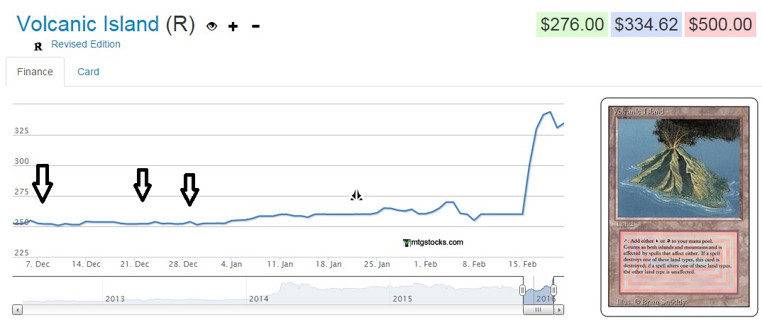 The arrows in the dual land images above are the days I traded my extra copies on PucaTrade. So going by these graphs I made a terrible decision in retrospect.
