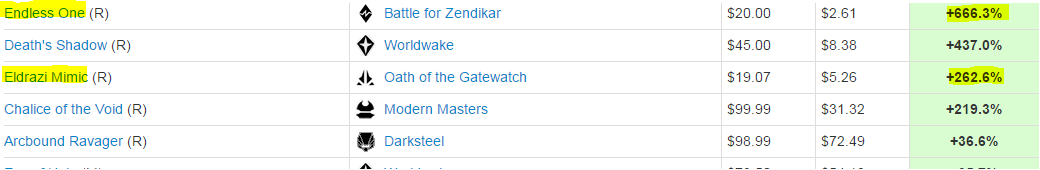 Ryan Overturf and I covered some things via Twitch yesterday. Despite some technical hiccups, thanks everyone who tuned in and enjoyed the commentary. Unfortunatly the broadcast wasn't saved, but we talked about many of these rare level Eldrazi and the financial implication would be foils. Turns out we were right.