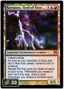 Another victim of collateral damage from the Twin ban that hasn't found a home in a Modern metagame tyrannized by the Eldrazis. After a deep dive from almost 50 tix down to 13 tix, Keranos's price was looking for a floor to rebound.