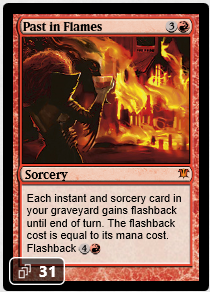 Past in Flames has a very unique effect and has seen play in Storm decks in Modern and Legacy, with only a minimal appearance in Modern considering the format's current situation. With the exception of a price dip last September during Innistrad flashback drafts, the floor of Past in Flames has been around 10 tix for about the last two years.