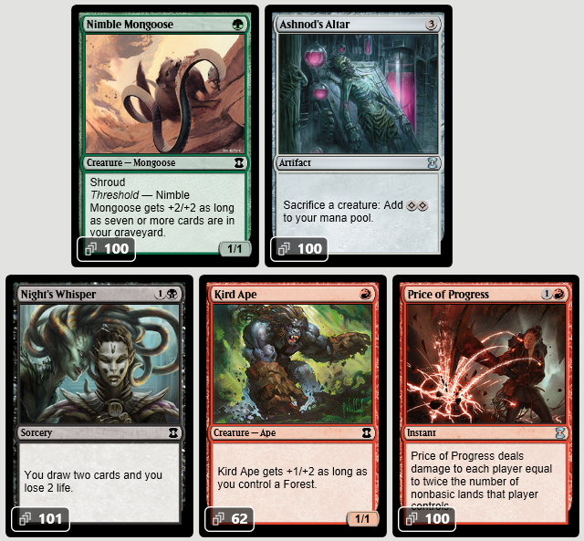 A nice little spec, especially considering I kept my copies through Coldsnap flashback drafts. My buying price was not optimal and I could have bought more additional copies after the flashback drafts. In the end I gladly take these 109 extra tix for a few baubles.