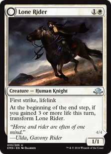 Lastly in the two-drop slot, we have Lone Rider // It That Rides as One. One of the biggest challenges for Modern Soul Sisters decks is finding a finisher. The decks tend to do really well at slowing a game down, but they have a hard time actually winning.