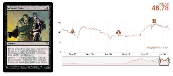 This is an all-star Modern staple and a clear example of support and resistance lines, with the card bouncing between 2 tix and 3.3 tix. Conflux flashback draft were playable this week, so I recommend investing in that particular edition.