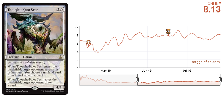 Thought-Knot's lack of presence at the first Star City Games Standard Open, and the wave of players selling their cards to play Eldritch Moon events on MTGO, make me believe strongly that I can pick it up again at a better price. If you can't close profitably at the current price, I recommend just holding it.
