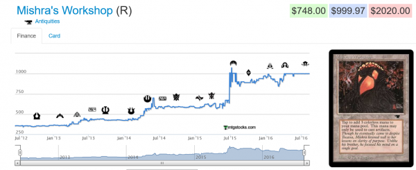 Another example is Vintage favorite Mishra's Workshop. Here's a land from Antiquities that has also hit all-time highs lately.