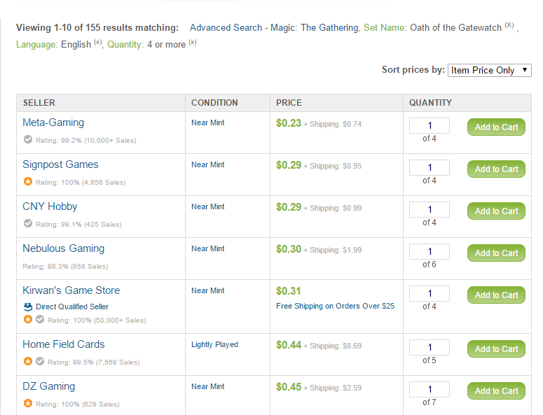 So what's the trick to picking up Aid at a half of TCG market, and Outfitter at a dime? Well, cash is the easiest method; I'll get that out of the way right now. It's so much faster to deal in dollars and dimes instead of trying to reanimate the dead art of trading. While there are a few stalwart LGS where trading at TCG mid/market still exists, I've found it to be utterly miserable for the past few years. Offering cash dollars for bulk and near bulk rares is an incredibly effective way to help Standard players get their fix for the next set. Spike wants to spend $500 on a case of Kaladesh, but his binder is still thick with recent rares that didn't end up seeing play, because he only built Bant Company and Temur Emerge for the past six months. Send Spike a Facebook message, and let them know that you'd be happy to buy all of those jank rares out of their binder at buylist prices. You'll even drive to their house and sort out everything by price. Put that Aid in the .25 or .50 pile, and the Outfitter in the dime pile. If he wants to trade for staples to fill out his next Standard deck, ship him/her that Liliana, the Last Hope at TCG low while you swim in bulk rares. Everyone's happy.