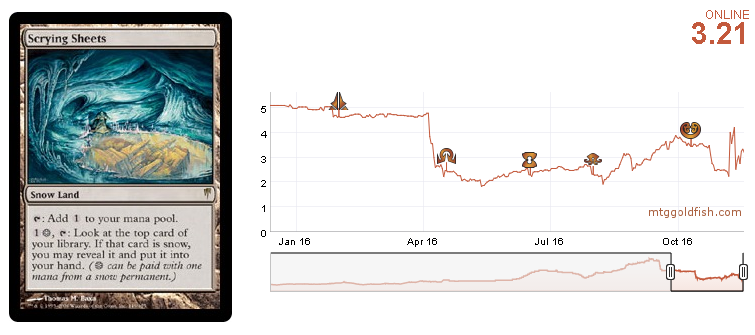 In the last part of the graphic above, we can see speculators buying and liquidating a few days after, so the current support level is unlikely to be perforated. If the deck gains a home in the metagame or incentivizes players to try new builds with Skred, Snow-Covered Mountains and Scrying Sheets, the card will slowly go up, making it a long-term speculation target. As the card is unlikely to go down in my opinion, the best play is to hold until we see an MTGO announcement or event that will crash its price.