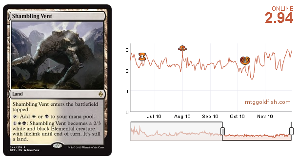 EDIT: Shambling Vent is actually played in the new WW in standard as well as Thalia’s Lieutenant. I think it is slightly better to HOLD it and see how will the deck perform this weekend, selling is a solid option too. Tom Ross is currently piloting the deck on the SCG tournament you can watch live at Twitch