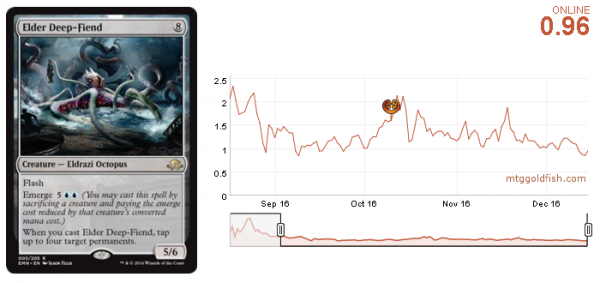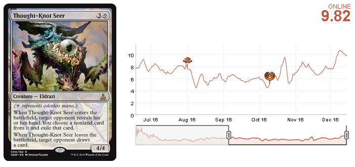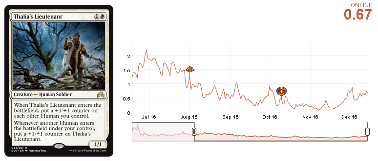 Some of the most interesting decks at the GP were White Weenie with Shambling Vents and the WG Humans. The problem with those decks is that they didn't make top eight. Those decks were around in the metagame for a few days and players are aware of them, but the number of players hasn't increased much. I think Thalia's Lieutenant reached a short-term high and selling is the best move. Holding them is also an option, but a slightly worse one, because if those decks don't prove to be strong enough in the current metagame, the price will go back to it lowest level.