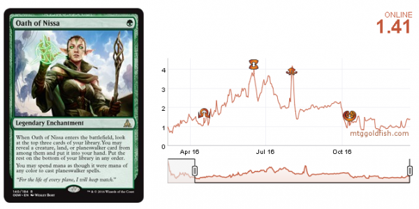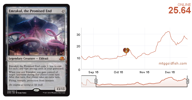 Hello, investors! We had another calm week, and due to the lack of Constructed events in the coming weeks, things should remain like this until the release of Aether Revolt in mid January. Standard prices should slowly go down as a general rule. In most cases, when they hit their historic lows, speculators tend to buy them. This is what I will be monitoring until Aether Revolt reaches the stores.