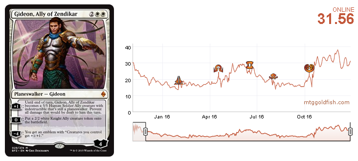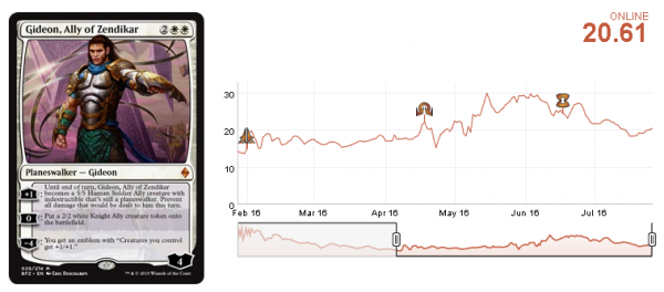 Again, expensive cards are very risky, and Gideon had always been the most expensive card in BFZ. Buying in to such a card expecting it to go even higher is usually a mistake.
