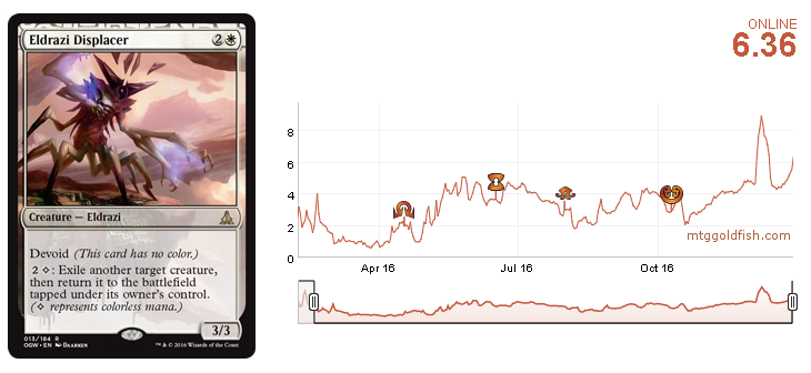 Eldrazi Displacer was a great speculation and good example of a card off the radar for a long period of time spiking when it sees play again.