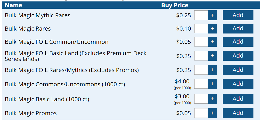 In the same way that I've been teaching how to ask for bulk rares and commons, you make yourself that much more appealing by saying, "I also take all your trash foil commons and match the most well-known stores in the country." Thanks for reading!
