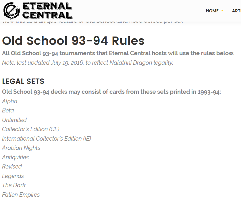 One answer, two words: Old School. While the formatâs founders never supported the use of Collectorsâ Edition and International Edition cards in â93/â94, many play circles have relaxed the card set restrictions to enable more players to get involved. It would appear that some communities stateside formally allow the use of these square-cut cards.