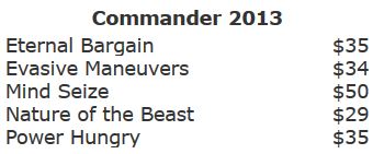 No wonder the Commander 2014 decks sell for more! The above data also reveals the sixth and final outlier: the Mind Seize deck from Commander 2013. Why is this one an outlier? One reason: