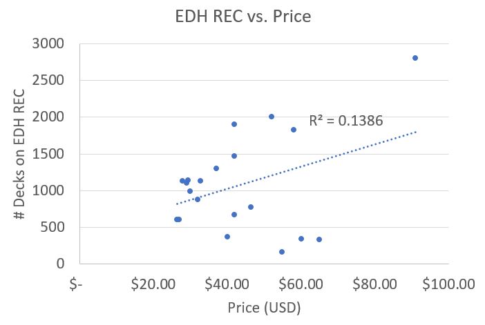 This trend can also be applied going forward. When a new set of Commander decks come out, we can look to EDH REC to help us pinpoint the ones to purchase most aggressively. We can also use the data to examine other preconstructed products with legendary creatures inside. Perhaps there are some Archenemy or Planechase generals popular in Commander – this would drive up prices of those particular products.