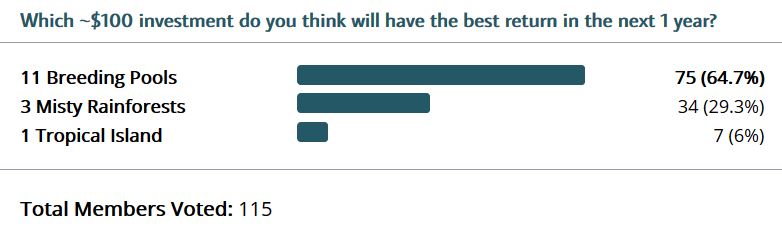 - Tropical Island: $100 Â -> $220 (+120%)