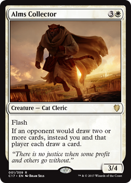 Now we finally get to one of my favorite cards from this release, Alms Collector. I’ve always loved Notion Thief. While Alms Collector isn’t quite as good, you don’t have the restriction of playing blue and black. Now Death and Taxes can play this guy. Terrifying. He’s also $6, but if he actually gets picked up by the Legacy deck, that’ll go up for sure.