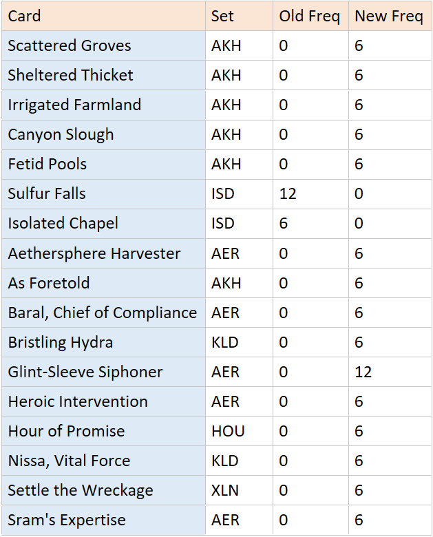 Going against the grain of recent updates, this update witnessed an uptick in curated frequencies for some Legacy staples. All three of these cards are cards I would sell. Containment Priest and Sanctum Prelate, in particular, should experience major price decreases since those cards just don't have that high of a demand.