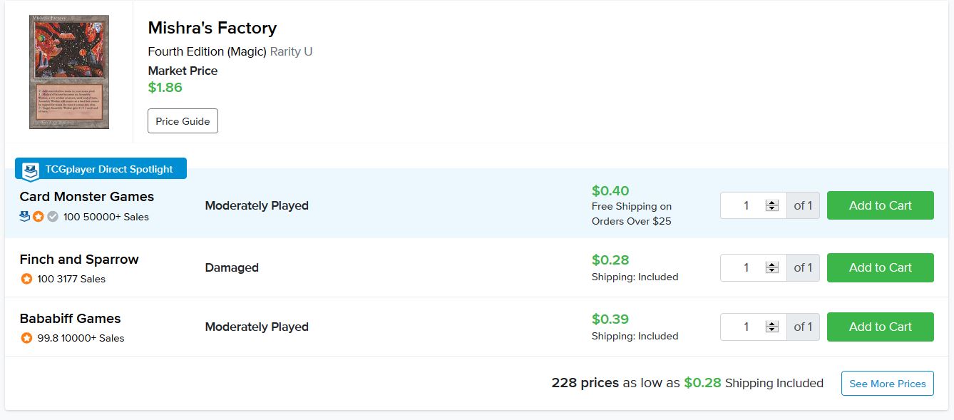 My advice is to acquire some near-bulk Reserved List Mirage rares while you’re shopping on TCGplayer. You could even sort by best-selling from the set to see what’s likely to pop next. You could also look to Visions and Weatherlight—the other two sets in the block—for viable targets that likely have even smaller print runs. If you’re buying for $0.30-$0.75 and you’re just picking up a few copies, you won’t break the bank and you’ll have a shot at making a few quick bucks.