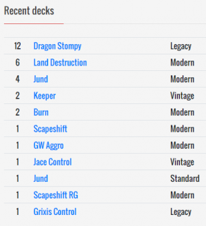 This is another card that sticks out from Braxton Leddonās list even though there are only two copies. It also sees a good amount of play in various Modern decks as well as Pauper.