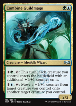 Kelly here, chipping my two cents on the Simic guild. When I read Eddie's estimation of Hadana's Climb, I got excited because it's so easy to trigger this 3-drop on the same turn you play it. On the flip-size, it's a mana fixer and accelerator that turns every creature into a huge evasive threat. So I looked at some of the options to trigger this thing early and often, and here's what I found by searching for +1/+1 counters in Blue/Green Standard. A full list of targets is below, but 2 cards stood out among the rest: