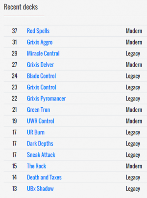 The price of this has finally calmed down, yet the number of decks that play it continue to rise. This means we could start to see a slow uptick in the near future. It’s also a blue Wizard. So if you didn’t read anything before this, what that means is that it could see play in a new Wizards deck in Modern or alongside Force of Will in Legacy. And it’s already showing up in Legacy Humans.