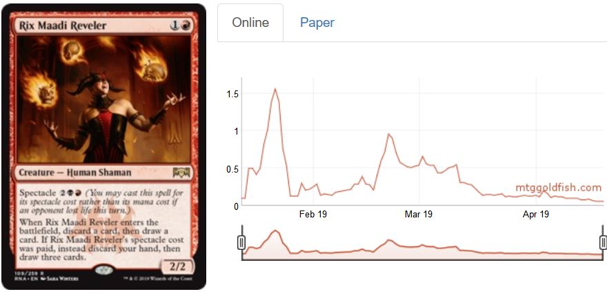 Given the love that Grixis is getting in War of the Spark, I'm optimistic about its chances to find a place in the metagame. If it does, I'd expect Reveler's price to rise between $0.25 and $0.50.