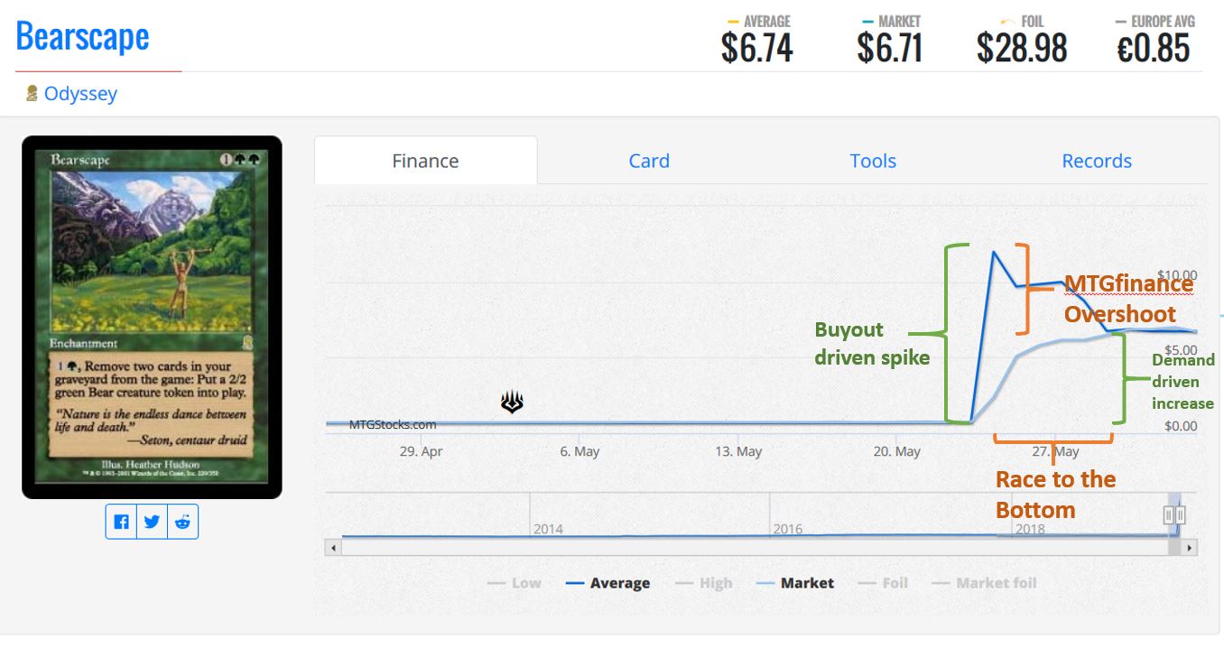 When the MTG finance community says they are merely accelerating price adjustments that would inevitably happen, they’re right. The price is spiking overnight and will settle at a higher price than previously established, and this is a result of a natural increase in demand. Bears are pretty cool, after all.