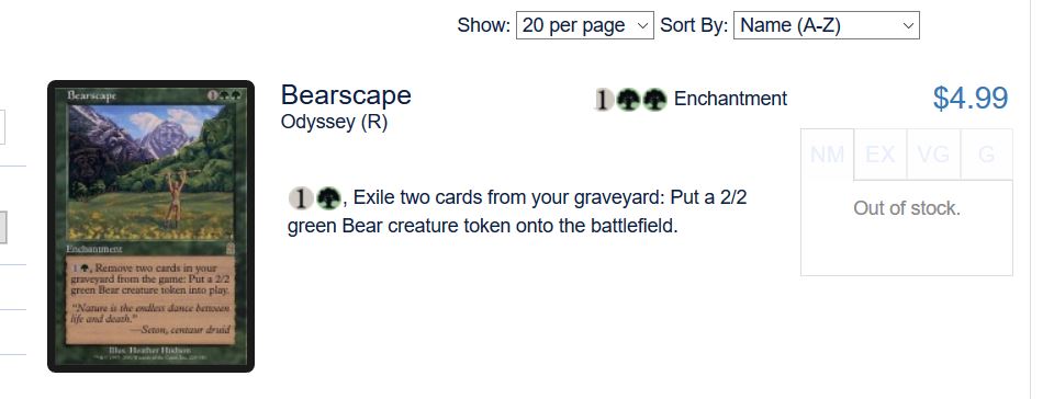 In the extreme, sellers may have to reduce prices and sell their assets at a loss to recoup liquidity, causing the market to overshoot to the downside. This volatility may be great for day-traders, but it disrupts the MTG market and leads to frustration of the masses. Even large vendors may struggle with this volatility, either remaining “out of stock” for far longer than desired or else risk overpaying for a card that is difficult to move, putting a strain on their own liquidity. In the case of Bearscape, Card Kingdom is choosing the former (the right call in my opinion). But there are other cases where Card Kingdom chased a spike, overpaid on a card, and was left holding dozens of copies unable to sell for anything but a loss. I think Star City Games does this too, at times, and I hypothesize this is why they place some of the same cards on sale every Monday.