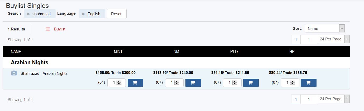 ABUGames has near mint copies of Jihad in stock with a price tag of $139.99. Card Kingdom’s near mint price is $109.99. But remember, “near mint” could mean “slightly played”—this is a good demonstration of why the new grading system can be tricky. Still, this used to be a card that ABUGames would charge 2x the price for vs. the rest of the market. Now their pricing is much closer to reasonable.