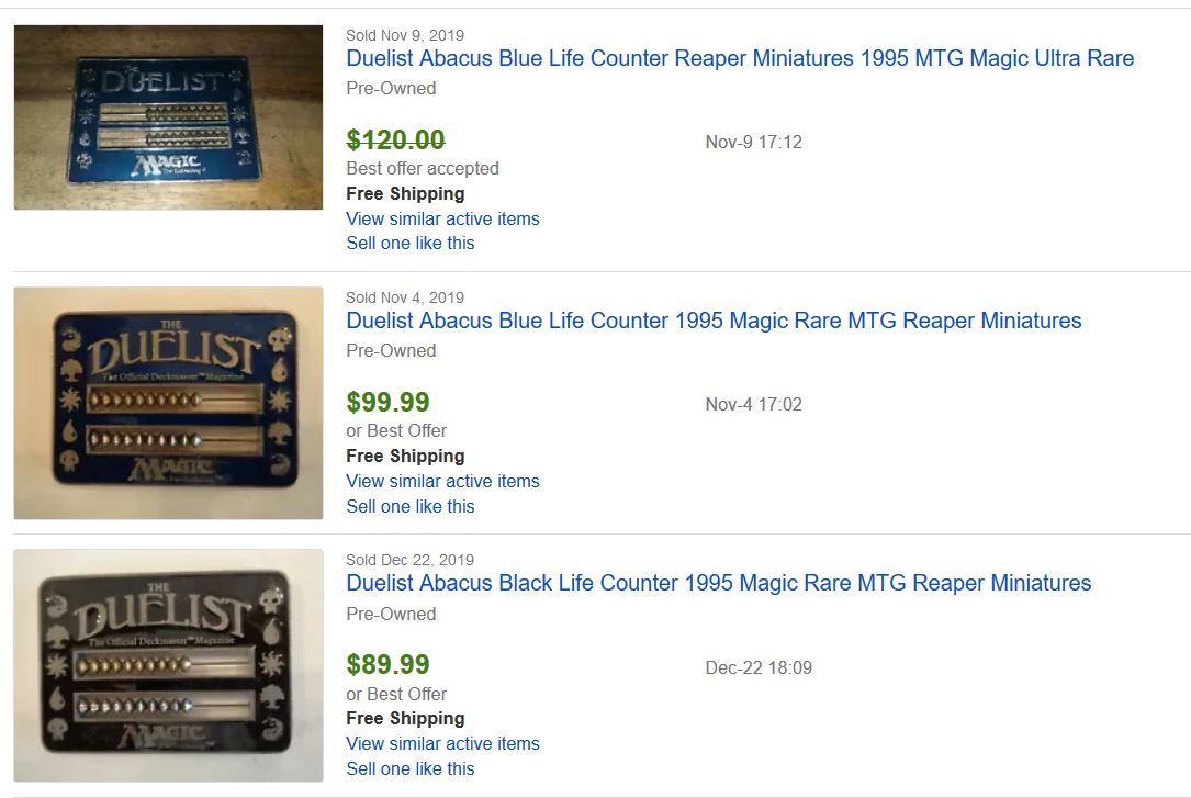 If you had purchased these from Duelist back in 1995, you would have made an attractive return for your money. Of course, no one would have guessed that Magic would have been around another 25 years, nor that these would be considered a collector’s item. So it’s doubtful anyone is sitting on tons of these unless they’re collecting them now (in which case, they know what they’re sitting on). But if you ever uncover these in someone’s collection, do them a favor and let them know they have a desirable gem in this life counter.