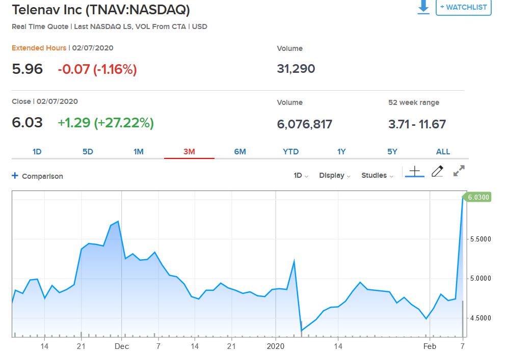 If all shareholders of the stock above (Telenav Inc) decided they didn’t want to sell their shares for less than $6 anymore, they all could have raised their sell price. But the price on CNBC and other websites would only reflect a higher value if shares actually exchanged hands at that higher price.