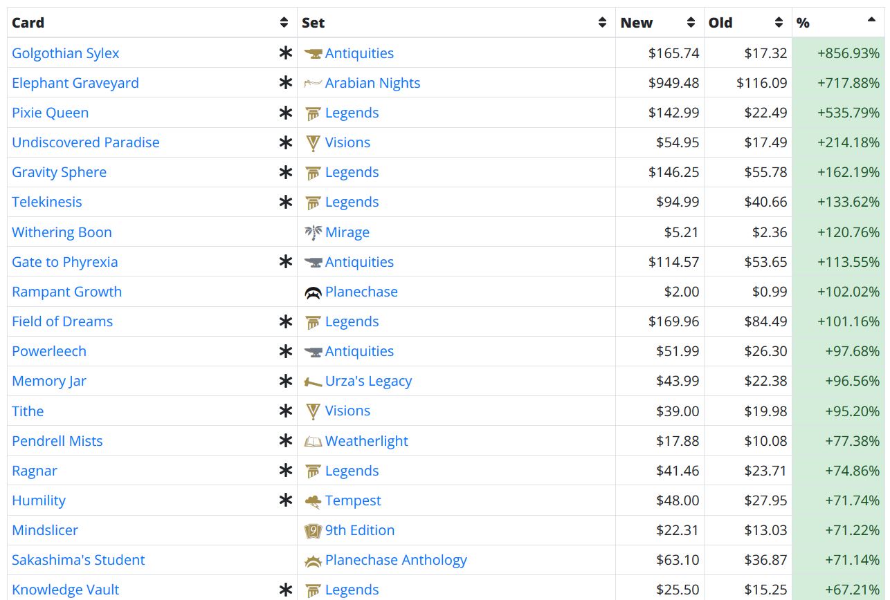 It’s becoming a daily tradition. Much like 2017, 2020 has become the year of the Reserved List buyouts. Each and every morning I check MTG Stocks’ Interests page to learn which cards were cleared out of TCGplayer. Reviewing the weekly gainers shows the breadth and depth of these buyouts.