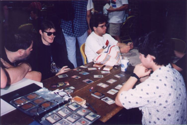 Whatâs the first thing that catches your eye in this picture? For me, itâs not the players, the board state of the game in action, or the awkward clothing styles from the early 1990âs. Instead, itâs that binder casually placed on the end of the table. No one even appears to be looking at it.